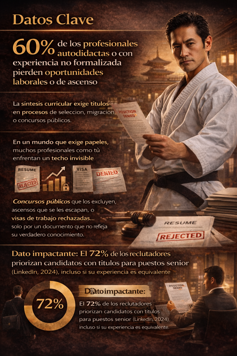 - En un mundo que exige papeles, muchos profesionales como tú, enfrentan un techo invisible de concursos públicos que los excluyen, ascensos que se les escapan o visas de trabajo rechazadas… solo por un documento que no refleja su verdadero conocimiento.